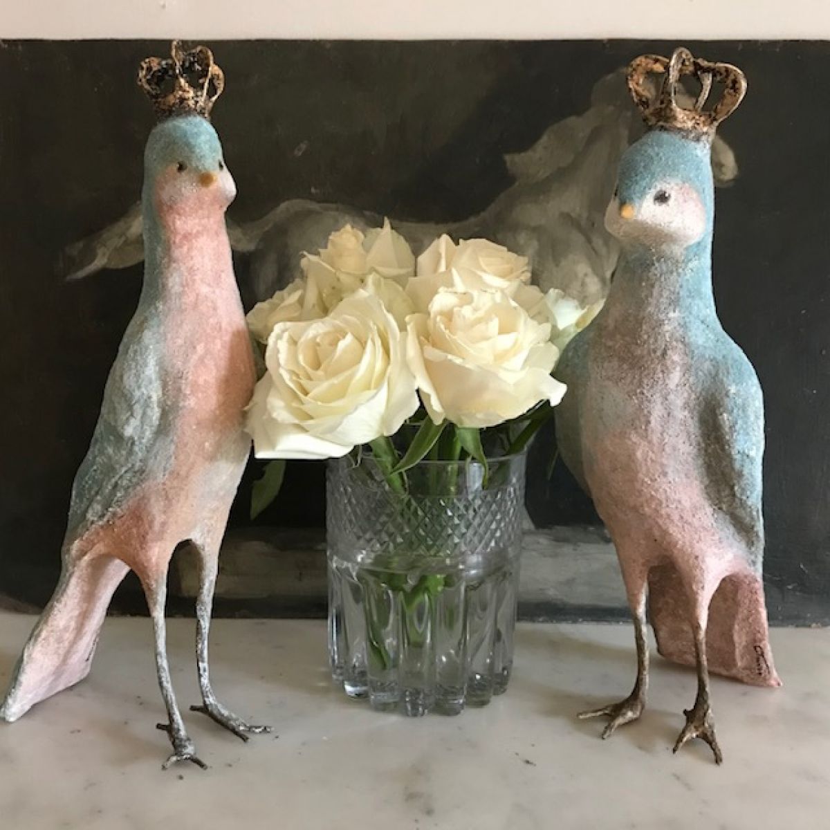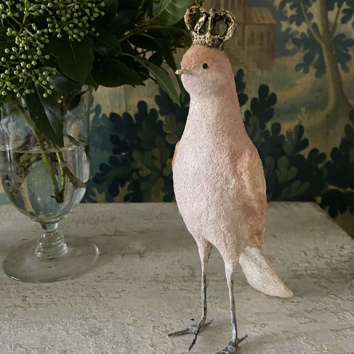 A hand made and painted papier-mâché bird - each bird is slightly different - with or without crowns and they vary in colour and size - height varies from 8" to 10"