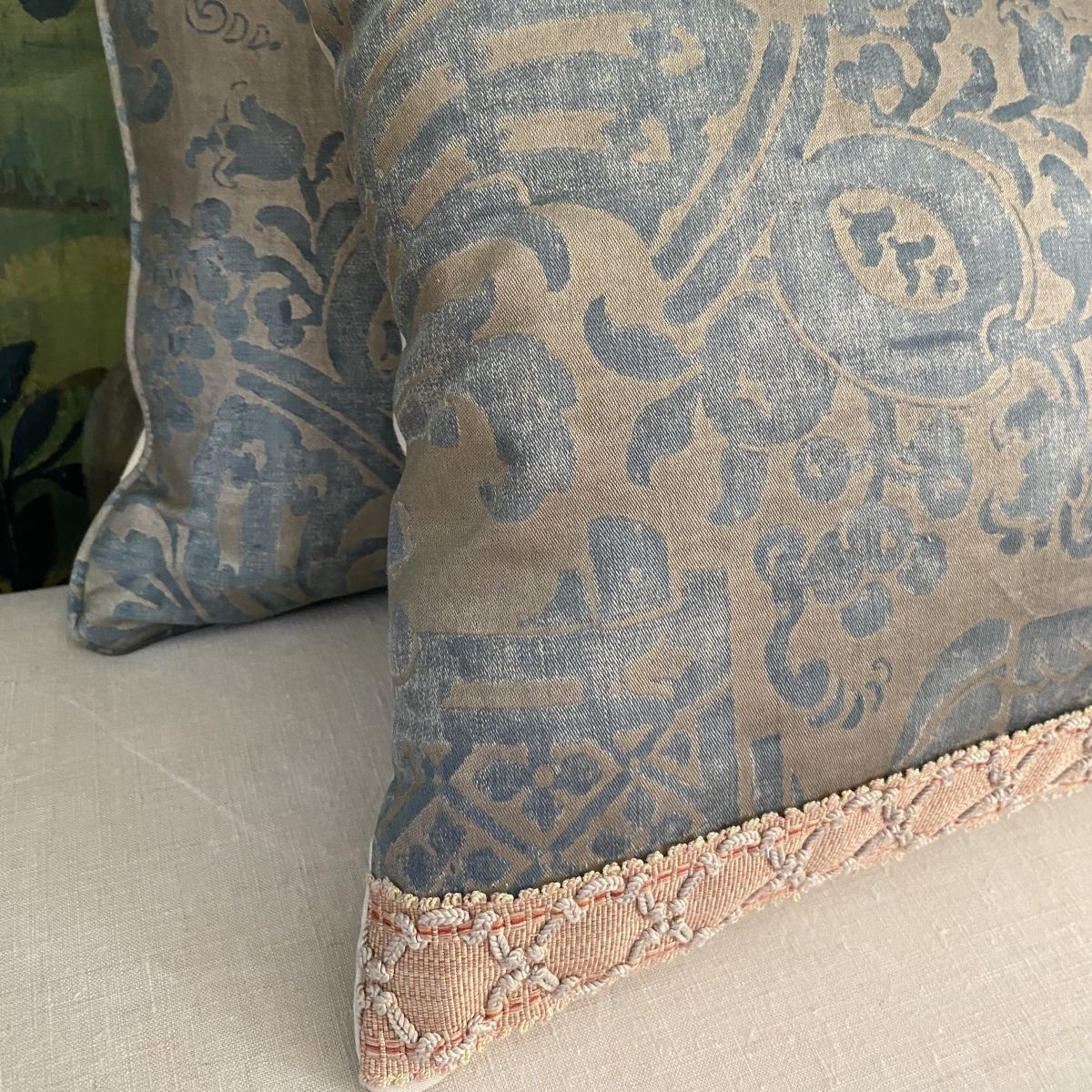 These cushions are a divine greyish blue with subtle silver overlay and are all made from a narrow loom width of 25” (selvedge to selvedge)