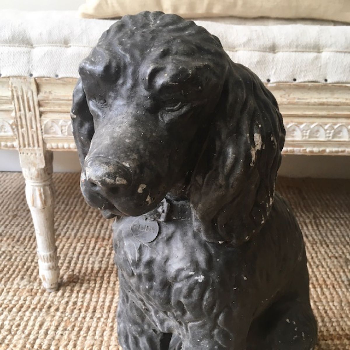 A charming composite concrete model of a poodle in original paint