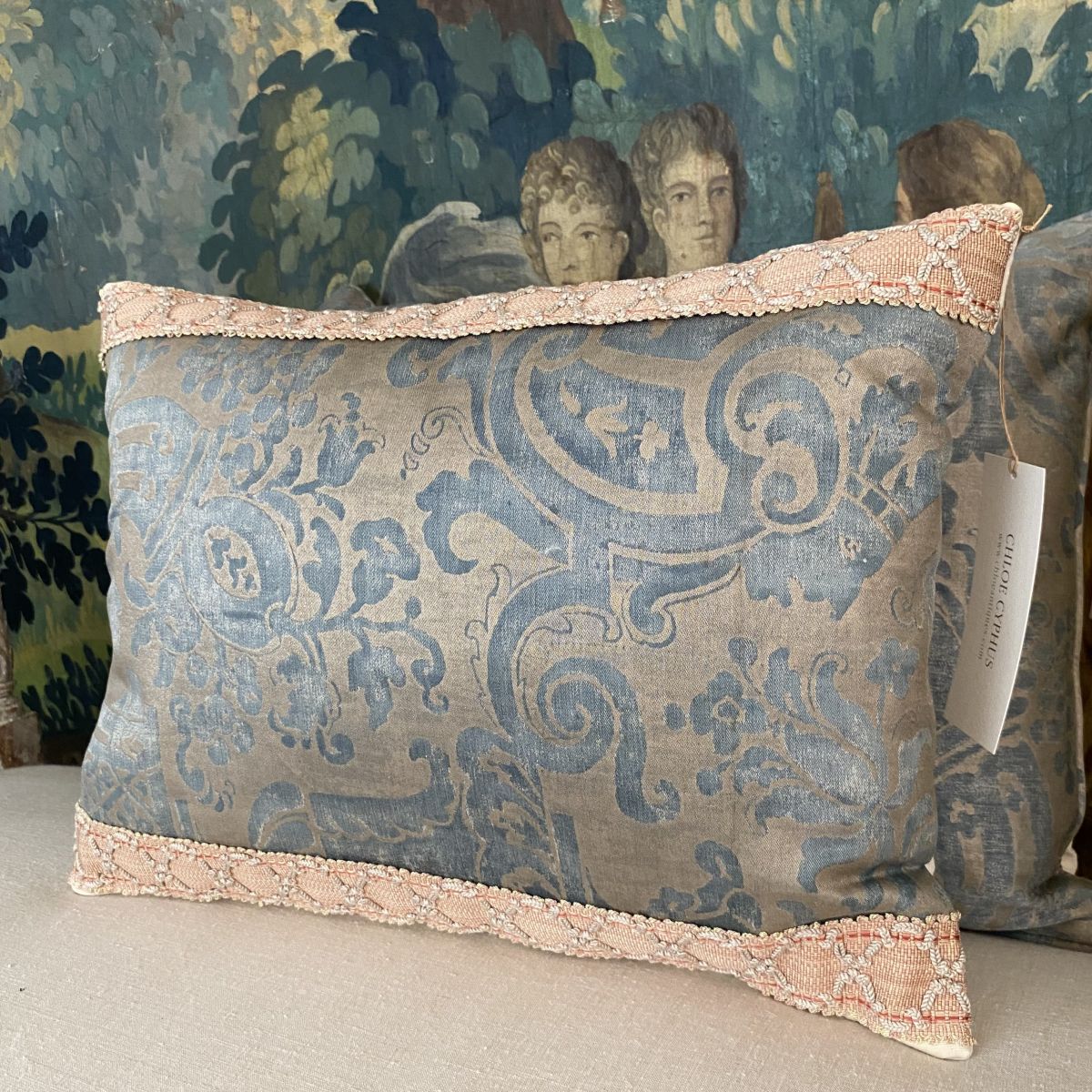 These cushions are a divine greyish blue with subtle silver overlay and are all made from a narrow loom width of 25” (selvedge to selvedge)