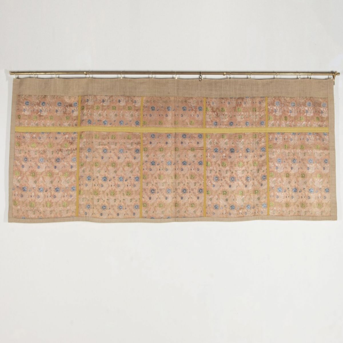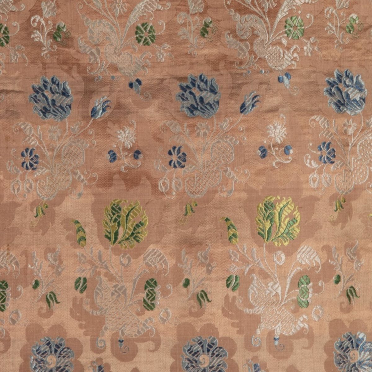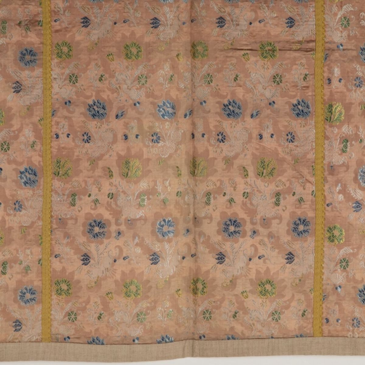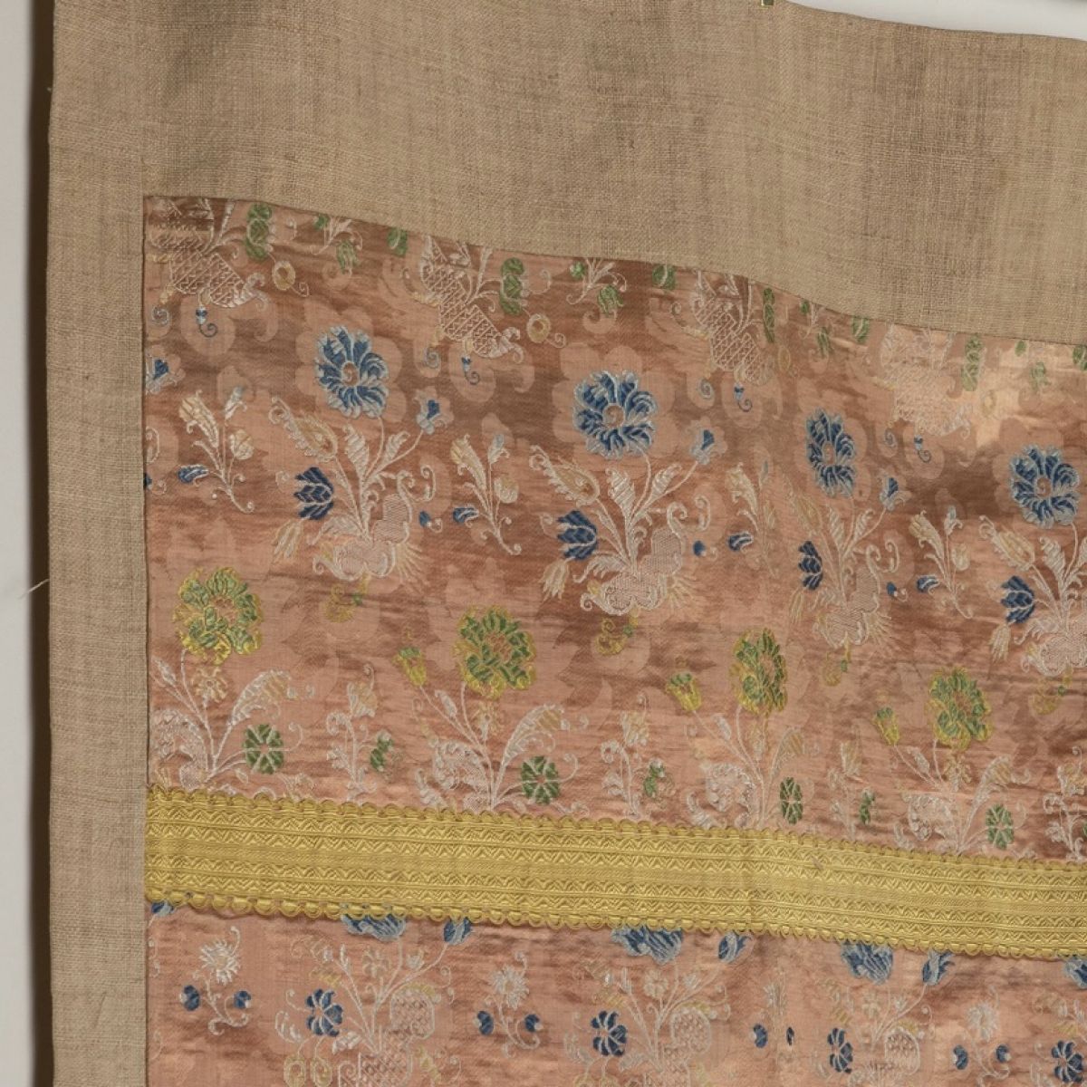 Exceptional 18th century Italian silk panel - originally this would likely have been a dress silk and at some point has been converted into an alter cloth which displays beautifully as a wall hanging - it is edged and backed with 18th century hemp linen and the individual silk panels are edged with antique gold braid - all textiles are in excellent condition and the silk shows no sign of wear