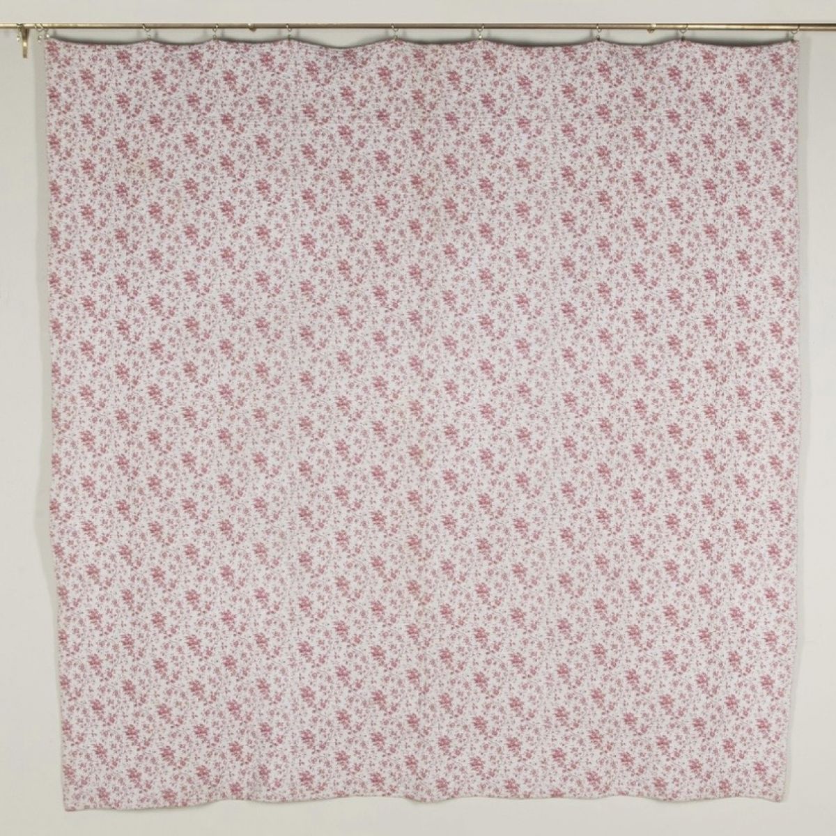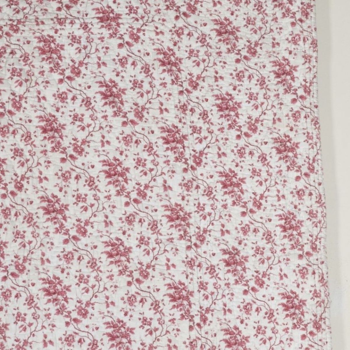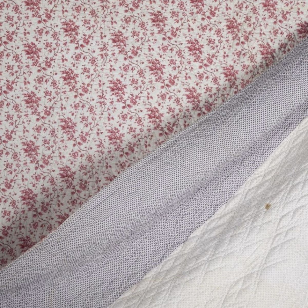 A large beautiful 19th century French hand stitched floral quilt with pretty raspberry pinks on a white background in good condition and a two tone sprigged floral with small marks and a small patch to reverse